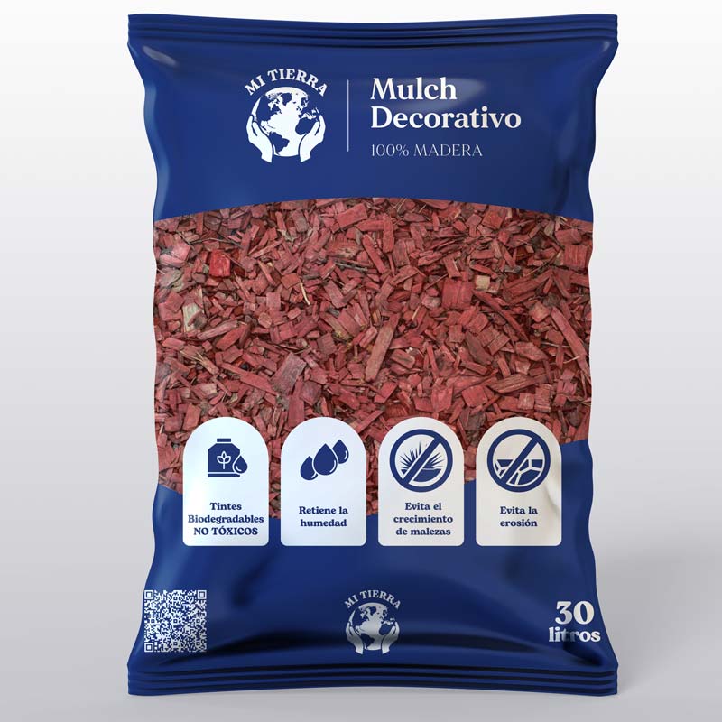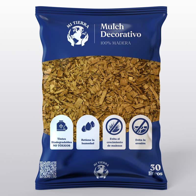 Mulch «Mi Tierra» en color azul, es un producto que fomenta la belleza de tu patio y jardín. Consta de «chips» o astillas de madera de pino teñidas con pigmentos naturales inocuos y nutritivos para tus plantas. Solo debes aplicarlo y distribuir de manera uniforme sobre la superficie de tu jardín idealmente alrededor de plantas o árboles ya que retiene la humedad y previene la formación de malezas.